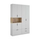 2 דלת + 2 דלתות עליון תחתון + 2 מגירה + מגירה אחת עמוקה + תא פתוח בגוון עץ + ידית מתכת כנף שחור